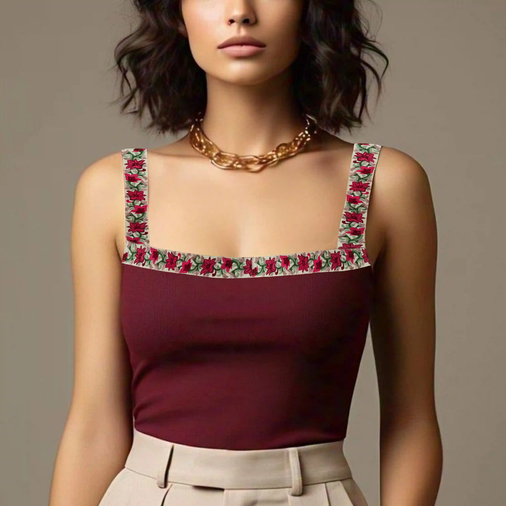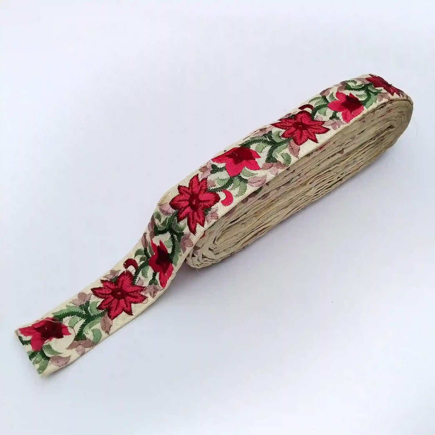 Cream Base Red Floral Embroidered Lace Trim for Sarees, Kurtis, Dupattas, Bags & DIY Projects | 2 Meters