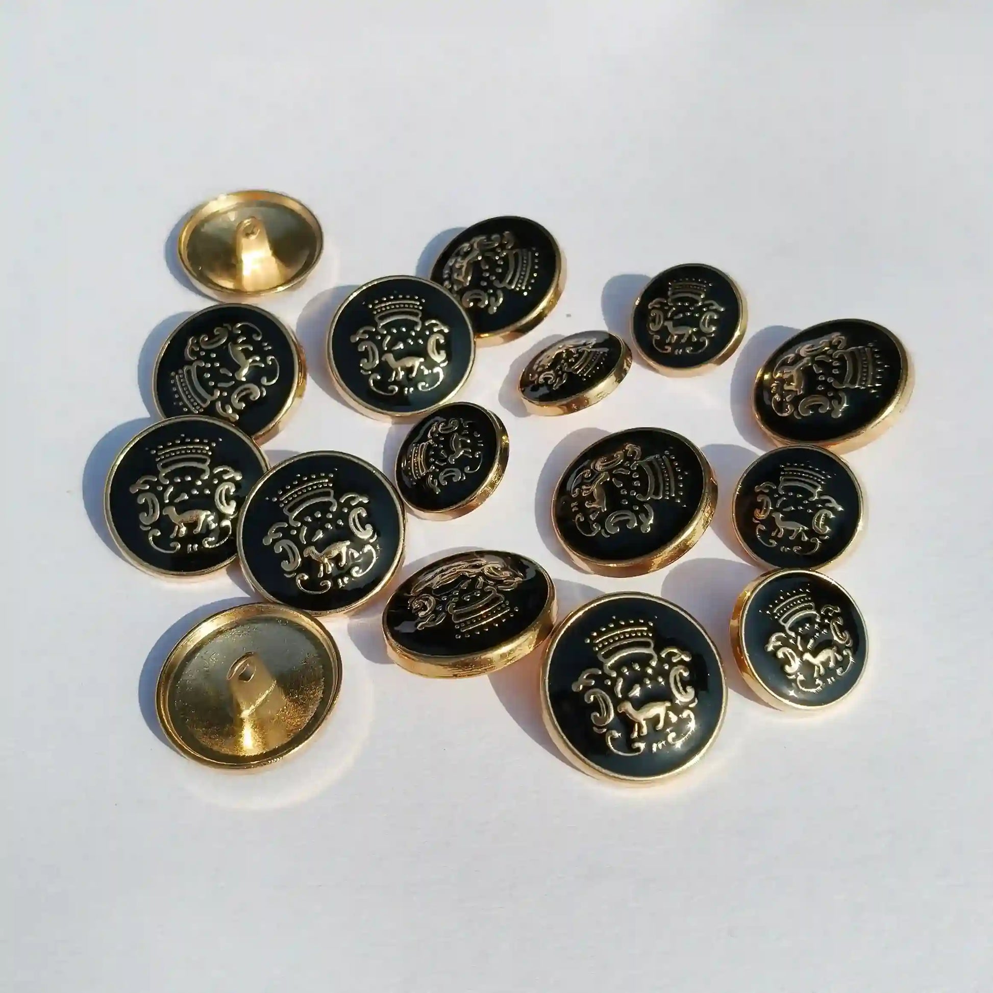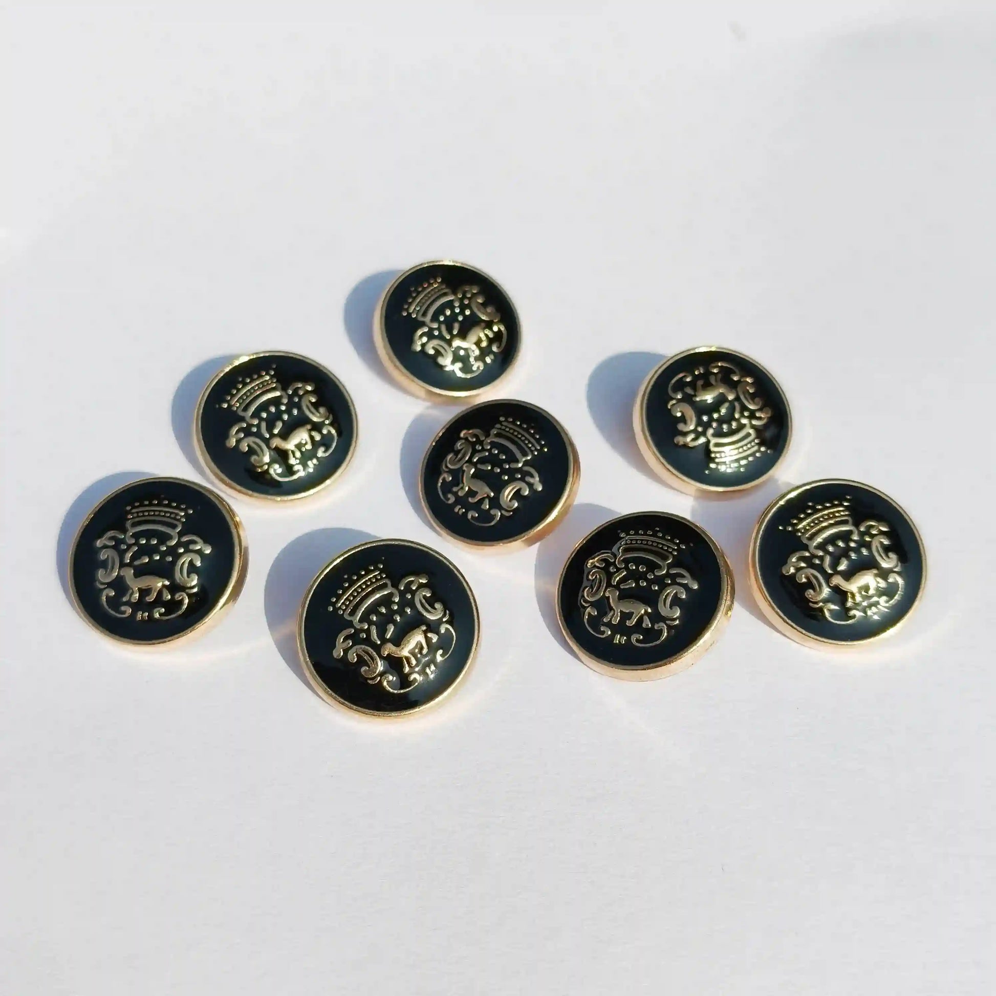 Designer Black & Gold Metal Button with Royal Horse Emblem (18mm & 23mm) for Bandhgala, Jodhpuri Suit, Blazer, Coats & More